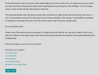 El Diluvio es un juego de aventura hipertexto gratuito que transforma una ciudad natal inundada en un viaje reflexivo sobre la memoria y la pérdida. A través de navegación simple y escritura evocadora, invita a los jugadores a deambular por calles sumergidas y lugares familiares mientras enfrentan el peso emocional de la despedida y el coraje para finalmente dejar el hogar.